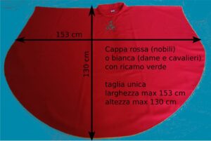 Le cappe sono ampie ma senza maniche, possono avere un collo ampio e alto in relazione allo specifico modello e possono essere completate o no dallo stemma dell’Ordine ricamato sul petto in verde che comprende lo scudo sannitico coronato con le tre Croci (anglicana, latina e ortodossa).